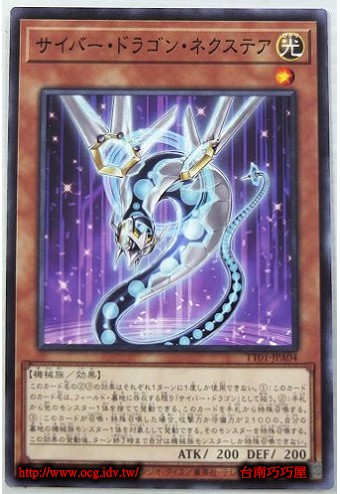 | 0 | TT01-JPA04 | 電子龍次世階 | 效果怪獸 | 等級1 | 光 | 機械族 | 普卡 | 200 | 200 | 01142880 | 內容 |