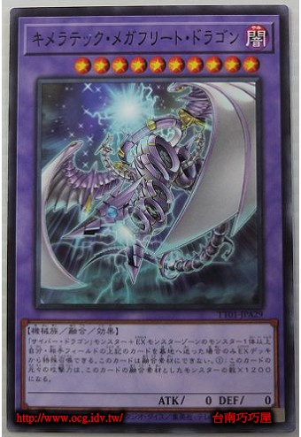 | 0 | TT01-JPA29 | 奇美拉嵌合巨艦龍 | 融合怪獸 | 等級10 | 闇 | 機械族 | 普卡 | 0 | 0 | 87116928 | 內容 |