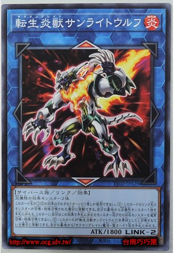 | 0 | TT02-JPA29 | 轉生炎獸陽光狼 | 連結怪獸 | LINK-2 | 炎 | 電子界族 | 普卡 | 1800 | 87871125 | 內容 |