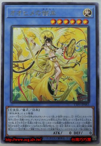 | 0 | TTP1-JP063 | 大日女之御巫 | 儀式怪獸 | 等級6 | 光 | 天使族 | 銀字 | 0 | 0 | 81260679 | 內容 |