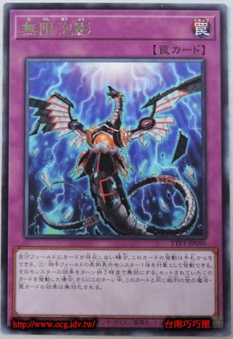 | 0 | TTP1-JP090 | 無限泡影 | 通常陷阱 | 罠 | 銀字 | 10045474 | 內容 |