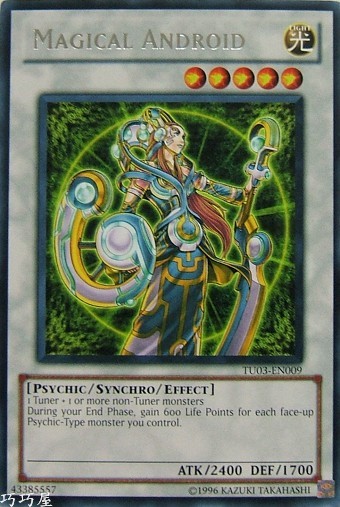 | 0 | TU03-EN009 | 魔力仿生人 | 同步怪獸 | 等級5 | 光 | 超能族 | 銀字 | 2400 | 1700 | 43385557 | 內容 |