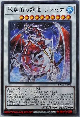 | 0 | TW01-JP001 | 冰靈山的龍祖 聖槍龍 | 同步怪獸 | 等級10 | 水 | 龍族 | 普卡 | 3300 | 2700 | 96402918 | 內容 |