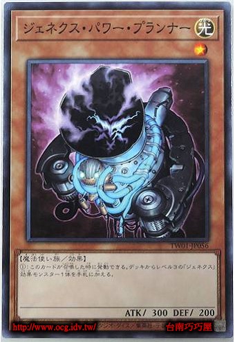 | 0 | TW01-JP056 | 次世代節能者 | 效果怪獸 | 等級1 | 光 | 魔法使族 | 普卡 | 300 | 200 | 30399511 | 內容 |