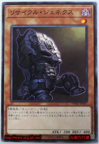 | 0 | TW01-JP067 | 回收次世代 | 協調怪獸 | 等級1 | 闇 | 機械族 | 普卡 | 200 | 400 | 51827737 | 內容 |