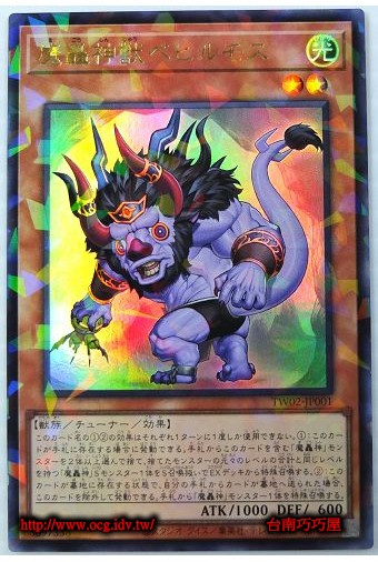 | 0 | TW02-JP001B | 魔轟神獸貝希摩斯 | 協調怪獸 | 等級2 | 光 | 獸族 | 金亮全鑽 | 1000 | 600 | 68897338 | 內容 |