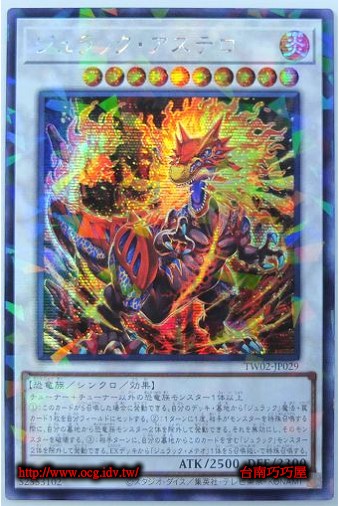 0  TW02-JP029A  侏儸紀星體龍  同步怪獸  等級10  炎  恐龍族  半鑽全鑽  2500  2300  52553102  內容