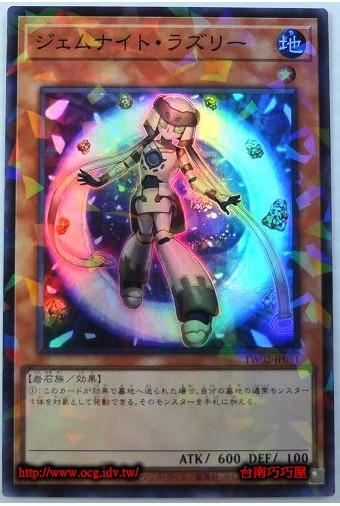 0 | TW02-JP051B | 寶石騎士青金石 | 效果怪獸 | 等級1 | 地 | 岩石族 | 亮面全鑽 | 600 | 100 | 81846636 | 內容 |