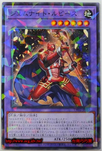 0 | TW02-JP055 | 寶石騎士紅寶石 | 融合怪獸 | 等級6 | 地 | 炎族 | 普鑽 | 2500 | 1300 | 76614340 | 內容 |