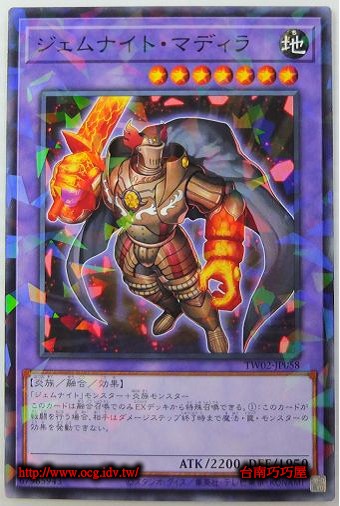 0 | TW02-JP058 | 寶石騎士黃水晶 | 融合怪獸 | 等級7 | 地 | 炎族 | 普鑽 | 2200 | 1950 | 67985943 | 內容 |