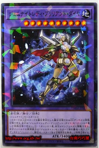 0 | TW02-JP065 | 寶石騎士女郎明亮鑽石 | 融合怪獸 | 等級10 | 地 | 岩石族 | 普鑽 | 3400 | 2600 | 19355597 | 內容 |