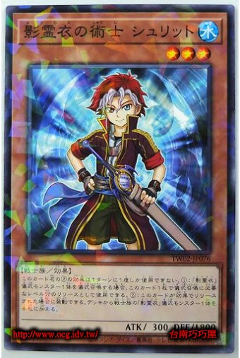 0 | TW02-JP076 | 影靈衣的術士 斯里特 | 效果怪獸 | 等級3 | 水 | 戰士族 | 普鑽 | 300 | 1800 | 90307777 | 內容 |