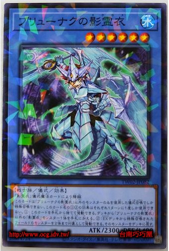 0 | TW02-JP082 | 神槍龍的影靈衣 | 儀式怪獸 | 等級6 | 水 | 戰士族 | 普鑽 | 2300 | 1400 | 26674724 | 內容 |