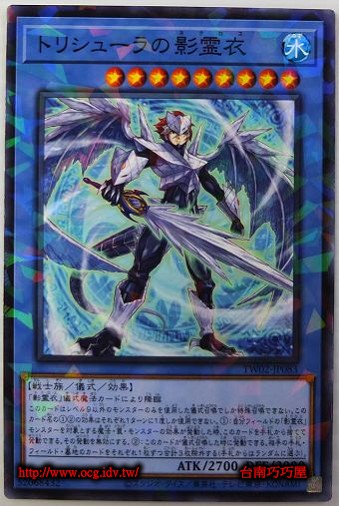 0 | TW02-JP083 | 三叉戟的影靈衣 | 儀式怪獸 | 等級9 | 水 | 戰士族 | 普鑽 | 2700 | 2000 | 52068432 | 內容 |