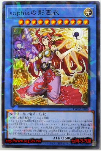 0 | TW02-JP089 | sophia的影靈衣 | 儀式怪獸 | 等級11 | 光 | 魔法使族 | 普鑽 | 3600 | 3400 | 21105106 | 內容 |