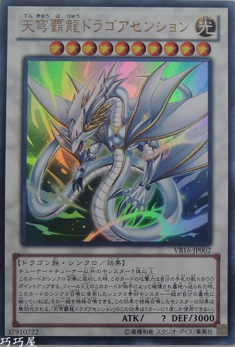 0  VB16-JP002  天穹霸龍升天龍  同步怪獸  等級10  光  龍族  金亮  ? 3000  37910722  內容