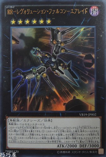 0 | VB19-JP002 | RR-革命獵鷹-大空襲 | 超量怪獸 | 階級6 | 闇 | 鳥獸族 | 金亮 | 2000 | 3000 | 79985120 | 內容 |