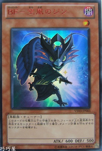 0 | VE03-JP003 | BF-空風之琴 | 協調怪獸 | 等級1 | 闇 | 鳥獸族 | 紅亮 | 600 | 500 | 38562933 | 內容 |