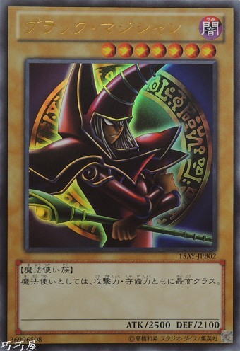 0 | 15AY-JPB02 | 黑魔導 | 通常怪獸 | 等級7 | 闇 | 魔法使族 | 金亮 | 2500 | 2100 | 46986414 | 內容 |