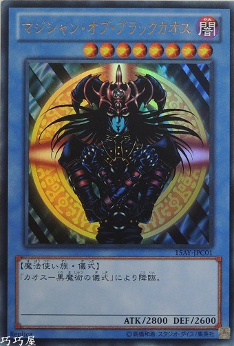 0 | 15AY-JPC01 | 黑混沌魔導 | 儀式怪獸 | 等級8 | 闇 | 魔法使族 | 金亮 | 2800 | 2600 | 30208479 | 內容 |