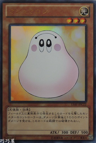 0 | 15AY-JPC22 | 棉花糖 | 效果怪獸 | 等級3 | 光 | 天使族 | 金亮 | 300 | 500 | 31305911 | 內容 |