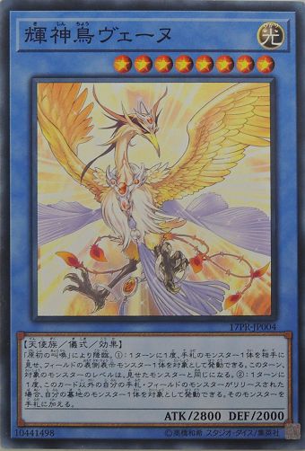 0 | 17PR-JP004 | 輝神鳥貝努 | 儀式怪獸 | 等級8 | 光 | 天使族 | 普卡 | 2800 | 2000 | 10441498 | 內容 |