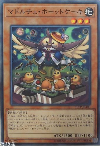 | 0 | 18TP-JP408 | 魔式甜點鬆餅貓頭鷹 | 效果怪獸 | 等級3 | 地 | 獸族 | 普卡 | 1500 | 1100 | 91350799 | 內容 |