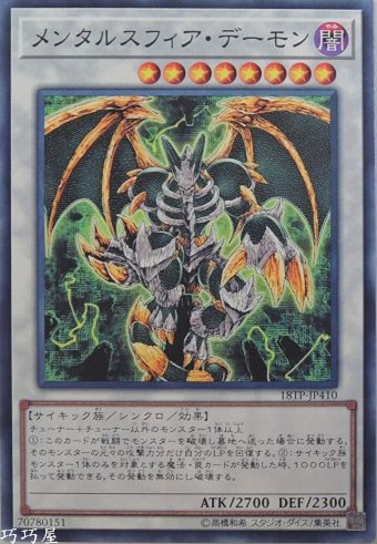 | 0 | 18TP-JP410 | 心靈世界惡魔 | 同步怪獸 | 等級8 | 闇 | 超能族 | 普卡 | 2700 | 2300 | 70780151 | 內容 |